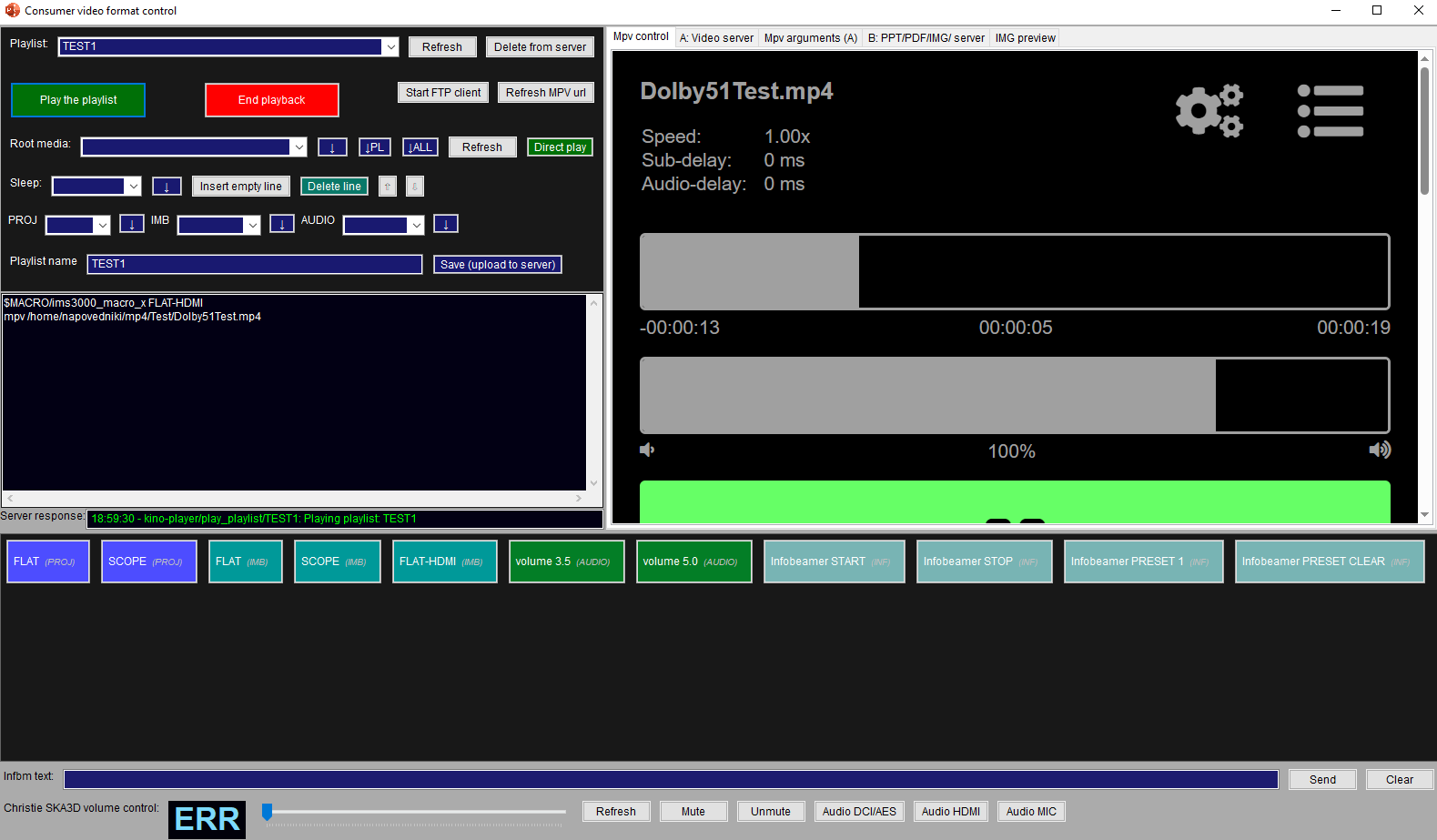 Last 2 tabs are used for Windows server control. If you start video playback from the PPT/PDF/IMG tab, you can then control it from the Mpv control tab. Mpv playback can't be controlled at the same time for both servers, however you can use 2 instances of this application with different settings.